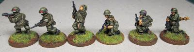 All the figures in the last eleven pictures have had the black primer treatment. I painted some other modern Germans in exactly the same colour scheme as these with a grey undercoat, but in comparison they look dull and washed out. I suppose for reality's sake, that is probably okay, but for table top miniatures, I like a bit more contrast.