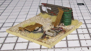 I also managed a couple of pieces of scatter terrain while I was at it, the first cobbled together from a mixed bag of mis-cast items from 'SGT'S MESS' (a brilliant bag of stuff for this sort of thing)-