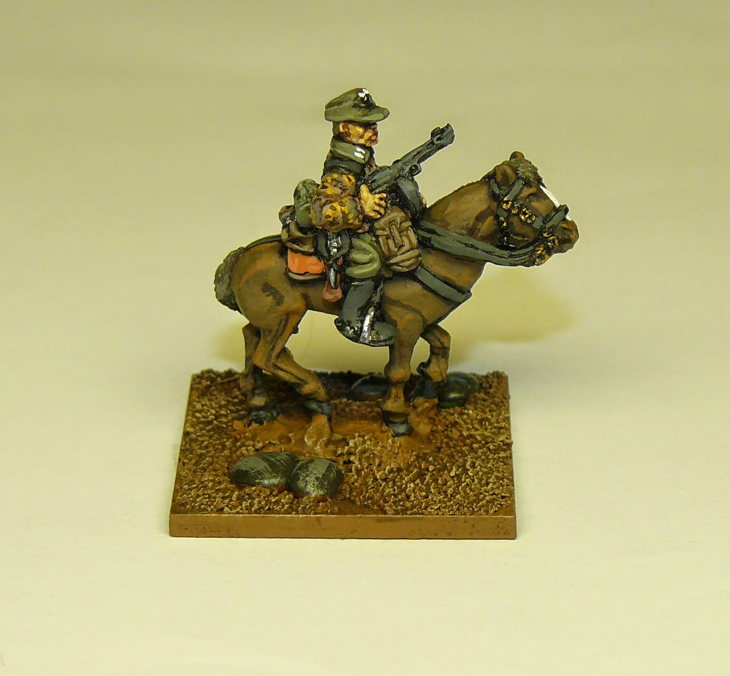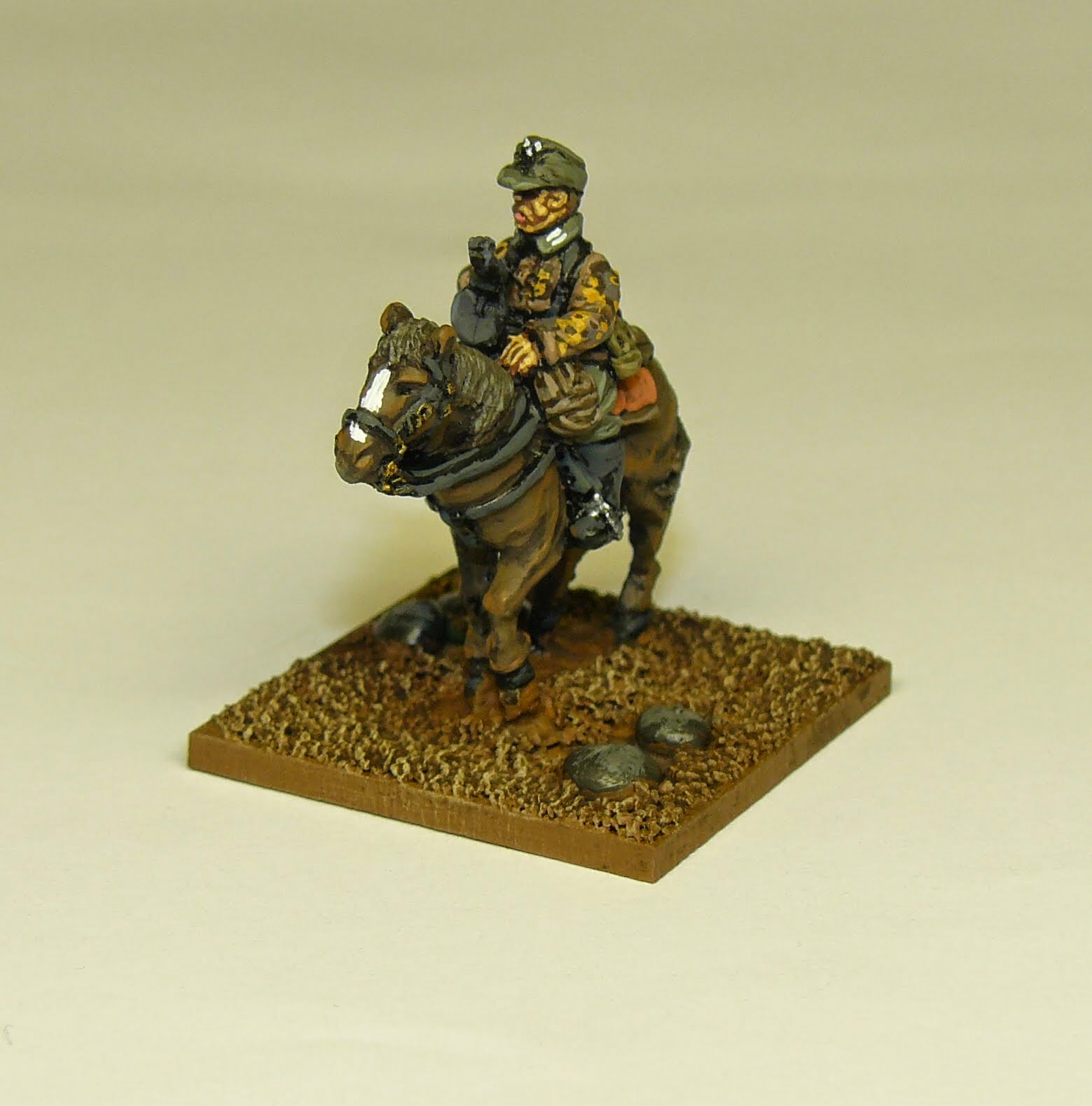As you can see, a mounted SS trooper (yes, I know the collar decoration isn't correct) base to be finished.